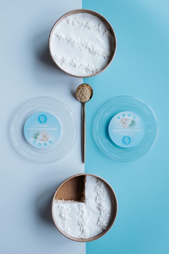 Ingredienser: Kokosmelk, kokosnøttdrikk, ekspandert bokhvete, risproteinhydrolysat, søtningsmiddel: erytrol, kokosnøttspon, glutenfri pudding, stabilisator: agar, himalayasalt.